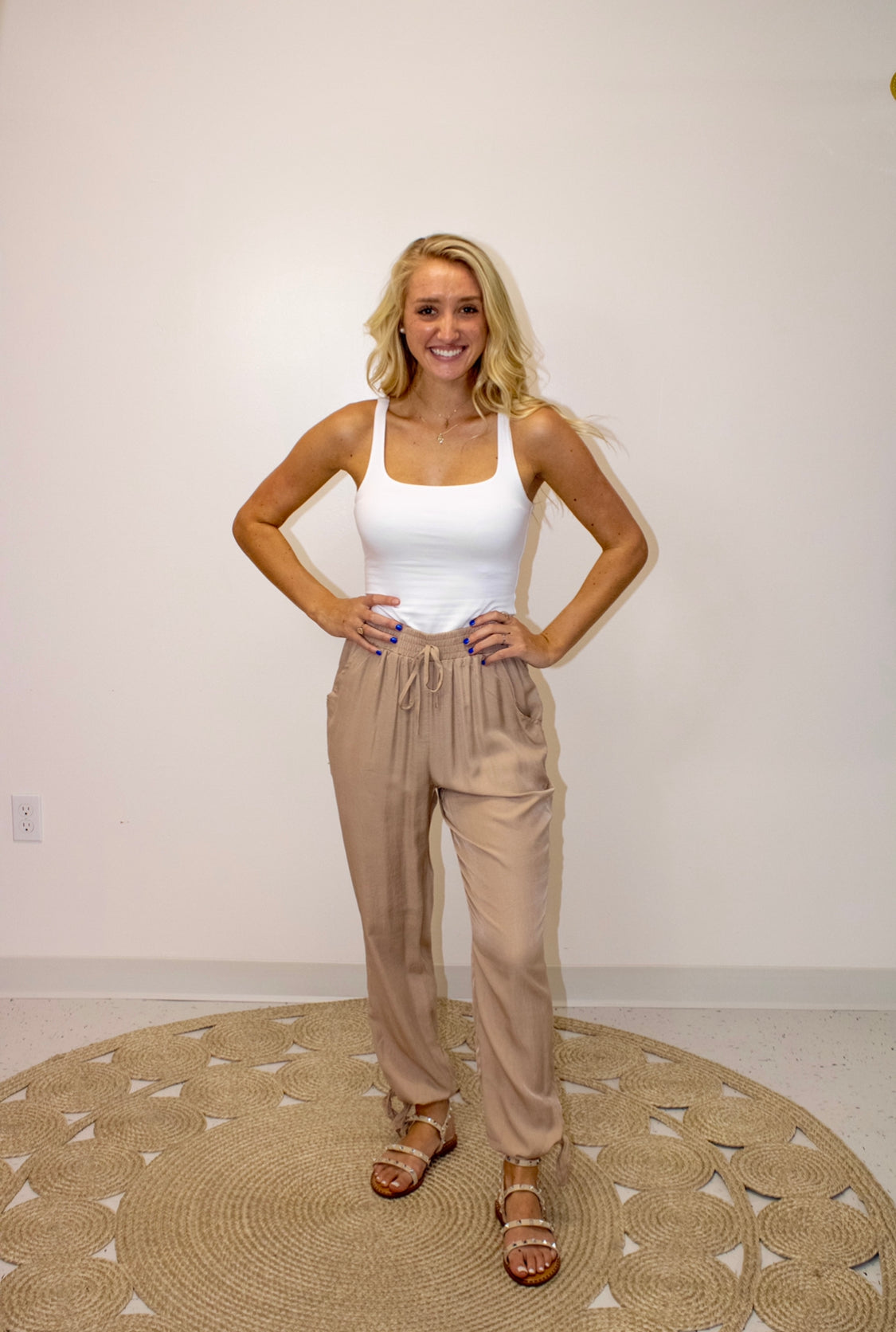 • Load image into Gallery viewer, TIED UP ON YOU PANTS TAUPE